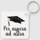 Por aspera e astra, chaveiro de Graduação de Letras Pretas de Cotação Latina. A citação popular latina significa Através das dificuldades às estrelas é excelente de um formando. Típica negra e boné de formatura preto em fundo branco. presente de excelente para um formando de segundo grau, faculdade ou universidade. Presente perfeito do professor para os alunos.