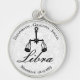 Zodiac Libra Astrology Personality White Custom chaveiro . Um belo design criado usando gráficos de sinais herdados do zodiac em preto e branco. Inclui os três traços positivos do sinal de Libra - Diplomático, Gracioso e Social! Simplesmente mude o nome e a data de nascimento para fazer disto um presente de aniversário personalizado!