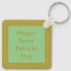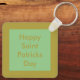 Este chaveiro de diversão apresenta uma imagem gráfica de uma moeda de ouro com dois tons de ouro. O círculo externo tem uma textura áspera. Dentro, o círculo interno da moeda é uma pedra-do-ouro texturizada composta por três folhas e um caule. Há texto personalizado no verso para que você possa incluir uma mensagem de sua escolha. A mensagem padrão é Happy Saint Patricks Day.