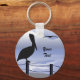 Uma ilustração gráfica da costa oceânica com pelicanos em um chaveiro. O chaveiro tem um modelo de texto para sua personalização. ©2013charmanepPaulson