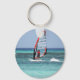 Windsurfer planando sobre a água nos trópicos de Caribe.