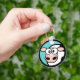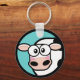 Chaveiro de vaca de cartoon. O fundo azul pode ser personalizado para ser uma cor de sua escolha se você desejar... Use apenas o botão 'Personalizar! Chaveiros fazem pequenos presentes perfeitos ou recheadores. Design © 2009 Lisa Marie Robinson