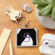 Chaveiro de prata personalizável com fundo preto e branco no qual você coloca seu próprio texto e faz o download da sua própria imagem! Use as opções personalizar e personalizar para personalizar. O branco de cor de fundo pode ser alterado em personalização, assim como a cor e o estilo da fonte! De HAMbyWhiteGlove aka HAMbWG. Mostrado com texto roxo.