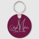 Wine red Monogram Wedding Save the Date Key Chains personalized with your monogram, bride and groom names and wedding date. Design by Elke Clarke ©2008. A perfect design because it is so versatile. The monogram template works for each letter of the alphabet. All text is customizable and so is the background color. This personalized keychain is perfect as a save the date gift to friends and family, as a wedding favor for your guests.