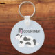 This personalized keychain makes a great small gift for pet rabbit owners. It features a simple style illustration of a white rabbit with charcoal gray spots with your choice of name in matching dark gray lettering all set against a light blue background. Also makes a fun gift for adding to Easter baskets.