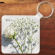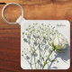 Carry beauty with this realistic keychain of a creamy white rose and airy baby's breath on a textured white background. Add your name or message for a sleek, custom touch, perfect for floral lovers with minimalist, meaningful style.