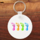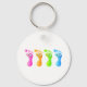 Uma fileira de quatro pegadas humanas coloridas com rostos felizes.