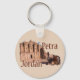 Petra é uma cidade incrível esculpida nas montanhas de arenito vermelho da Jordânia no Oriente Médio. O antigo mosteiro serviu como um Túmulo Nabataen e uma Igreja Bizantina. Nesta imagem, um burro, adornada com cobertores coloridos, fica olhando para a incrível estrutura arquitetônica. Este design faz um excelente, viagem de souvenir! Este chaveiro é totalmente personalizável.