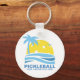 Um chaveiro de picleball divertido com um "sol" de picleball enquadrado por uma palmeira tropical e ondas azuis do oceano. Adicione seu texto personalizado abaixo - nome do clube, data/local do final de semana da seleção, nome do torneio, nomes de jogadores, etc. Segure-se na sua bolsa de picleball ou use para chaves de carro - Faz um presente perfeito para qualquer jogador de picleball.