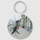 This keychain features my cartoon style image of a dapper Pigeon wearing a hat, whistling a merry tune and carrying an umbrella, walking along an urban street.