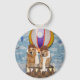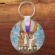 Este chaveiro apresenta recuperadores de ouros vestidos de pilotos em um balão de ar quente.