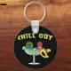 Um desenho animado vermelho e verde pimentões pimentões sentados em uma margarita apenas relaxando com as palavras "Chill Out." Diversão para Cinco de Mayo.