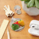 Os pimentos para película, em verde, amarelo e vermelho, assentam sobre uma placa branca, pronta a ser cozida. O original é uma pintura em miniatura de óleo por Kathie Miller