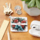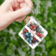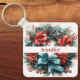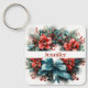 Chaveiro personalizado com uma bonito coroa de Natal. Uma imagem festiva com um pínus corado com flores vermelhas, holly e um adorável arco azul. Que encantador.