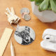 Uma chaveiro legal com um esboço de um rosto de cachorro olhando diretamente para você.