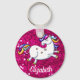 A gorgeous little chubby white unicorn, with rainbow colored mane, tail, horn and gold hooves, on a bed of pink glitter. This cuter than cute unicorn key chain can be easily personalized with your own name in the customize options. This unicorn keyring would make a great gift for a unicorn lover, or be perfect for unicorn party favors.