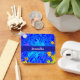 Este design apresenta um fundo azul escuro com espirais azuis claros e peças amarelas em chaveiros