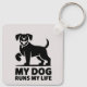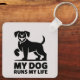 Chaveiro Playful Dog Outline "My Dog Runs My Life" Art