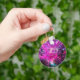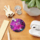 Magenta chaveiro com "PLUR;" a sigla que significa "Respeito pela Unidade de Amor pela Paz" na cultura Rave.