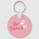 Chaveiro e rico com poodle rosa e fundo do padrão cardíaco.