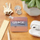 Chaveiro com uma citação inspiradora retrata um navio navegando na água, com céus azul-claro e rosa. Ele apresenta uma parafrase tirada do adorado hino cristão incrível Grace, "Que eu sempre acho sua graça incrível."