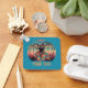 Eterno de chaveiro Tropical Cat Attitude Square: Um gato preto vestindo óculos de sol sobredimensionados e uma camisa havaiana atinge uma pose legal contra um pôr do sol tropical.