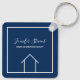 Este chaveiro moderno de corretor é personalizado com o nome da sua empresa real sob o nome do agente na tipografia quic. Esta cadeia de teclas quadradas azul e branco minimalista apresenta um desenho simples de uma casa. Presente contemporâneo para um agente que trabalha para ajudá-lo a comprar de uma casa.