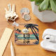 Um pôr do sol maravilhoso na praia, cercado por palmeiras e praias arenosas. Lembre-se, "A vida é sempre melhor em Chinelos"!