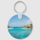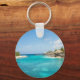 Um chaveiro com uma bela foto com um resort de praia tropical. Bonito água azul e praia branca arenosa com aqueles cabanas que lhe dão uma vibração tranquila na ilha.
