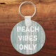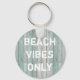 Padrão de madeira de cor azul que parece ter sido resgatado de uma cabana de praia com um texto personalizável de "somente vibrações de praia" em uma fonte branca angustiada.
