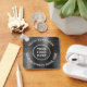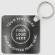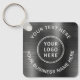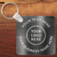 Chaveiro simples para sua empresa ou organização em uma cinza escura escovada / fundo metálico falso prateado. Adicione seu logotipo ou código QR e duas linhas de texto branco personalizado, como nome da sua empresa, slogan, obrigado ou deixe o vazio.