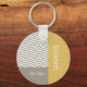 Chaveiro Preppy Cinza Chevron Yellow Geométrico Com Nome