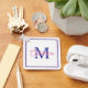 This preppy monogrammed keychain features a simple monogram on the front in shades of pink and navy blue on white with a matching pink and navy border. Personalize the monogram on the front with your choice of name and initial and contact information on the back.