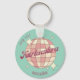 Fuerteventura España Retro Vintage Design com uma bola de disco a rosa e matizes de pêssego de damasco. Este belo chaveiro é um presente perfeito, lembrança ou acessório de Fuerteventura España residentes, visitantes, turistas ou fãs.