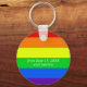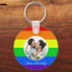 Este brilhante presente de aniversário do arco-íris apresenta uma foto personalizada de noivado LGBTQ para um gay ou casal lésbico que ama chaveiro ousado e colorido. Personalize esta design alegre LGBT com a sua fotografia romântica, nomes e data de ocasião.