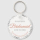Estas chaveiros são desenhadas para oferecer como favores às damas de honra na sua festa de casamento. Eles apresentam um design simples, mas elegante, com fundo branco, terracota ou laranja coral e texto de cinza, e uma borda floral de folha fina prateada. Há espaço para o nome dela, os nomes do casal e a data do casamento. Uma maneira perfeita de obrigado das damas de honra por fazerem parte do vosso dia especial!
