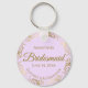 Estas chaveiros são desenhadas para oferecer como favores às damas de honra na sua festa de casamento. Eles apresentam um design simples, mas elegante, com um fundo púrpura púrpura pálido, letras douradas e uma borda floral de folha de folhas de ouro antiga. O texto diz "Bridesmaid" com espaço para seu nome, os nomes do casal e a data do casamento. Uma maneira perfeita de obrigado das damas de honra por fazerem parte do vosso dia especial!