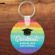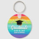 Este chaveiro de formando personalizado do mais velho arco-íris apresenta seu segundo grau ou nome de faculdade para a classe de 2025. Personalize com o seu ano de graduação com o script de chic manuscrito e o boné de formando preto para um presente de chave de graduação personalizada para um amigo LGBTQ que ama presentes coloridos.