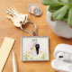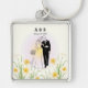 Um lindo porta-chaves quadrado com uma silhueta romântica de noiva e noivo em um campo de narcisos, personalizado com as iniciais "A&S" e a data especial "30 de setembro de 2023". O fundo gradiente rosa pastel suave adiciona elegância e calor. O presente perfeito de aniversário de casamento, casamento ou noivado para celebrar o amor eterno. Personalize com suas iniciais e data! Moldura de metal de alta qualidade com impressão acrílica transparente | Corrente durável | Leve e significativo