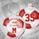 Este teclado de futebol fácil de personalizar apresenta a imagem realista de uma bola de futebol que tem painéis vermelhos e brancos, sobre os quais você pode personalizar o nome do atleta, número de camisa, nome da equipe e mascote e ano na frente e letra de monograma ou varsidade no verso - por katz_d_zynes