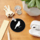 Um pássaro corvo branco sobre fundo preto.
