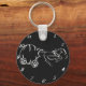 Chaveiro de rosto preto com design de caligrafia abstrato branca de um cavalo galopante puxando uma carruagem de abóbora. Inspirada por "Cinderela".