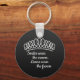 Chaveiro preto personalizado com tiara prateada e texto que diz, "Sorrisos vestem a coroa; perdedores vestem a coroa."