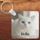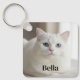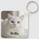 Pretty white cat with blue eyes custom photo keychain. Add your image here. Make your own keychain with your design, company logo or photograph. Upload your picture to this template to see how it looks. Create your own with photography of wedding, family portrait, pet cat or dog etc. Cute DIY gift idea for men women and kids. One sided. Pretty kitten with blue eyes.