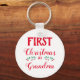 Este chaveiro branco é perfeito para roupas familiares personalizadas que combinam o Natal. Diz "Primeiro Natal como Vovó" numa fonte vermelha moderna. Para mais personalização ou outros itens correspondentes, por favor, sinta-se à vontade para entrar em contato comigo.