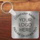 chaveiro de promocional para sua empresa ou organização com um fundo metálico falso em prata escovado. Carregue seu logotipo e personalize com o nome da sua empresa ou organização e um slogan, slogan ou outra linha de texto.