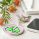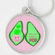 Esta divertida chaveiro de Natal apresenta uma imagem gráfica de uma vagem verde de Ervilha contendo 2 ervilhas verdes e uma ervilha rosa grande. A ervilha rosa grande tem um rosto bonito com olhos e boca. Do outro lado da ervilha, em texto cor-de-rosa mais escuro, está escrito "Baby Girl Ready to Pop". A design é ideal para um anúncio de gravidez, revelação de gênero ou chá de fraldas. Há um grupo de pequenas ervilhas rosa no fundo.