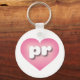 Este teclado apresenta um coração cor-de-rosa com um centro lavado em branco contendo as letras maiúsculas em negrito, arredondado, brancas e maiúsculas pr, uma versão lúdica da abreviação para Porto Rico, a ilha encantada.