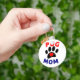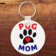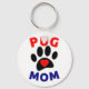 Impressão de pata de cão preto e esboços, desenhos de coração vermelho e texto. Cadeias de chave personalizadas. Tudo o que é visto é impresso. nenhuma costura será usada no fazer. Pug mamãe design. Ideia para mulheres que amam cachorros.