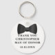Uma simples pulseira de chave de gravata borboleta preta com espaço para a data do seu casamento e texto curvo Homem de Honra. Pode ser usada para qualquer membro do cortejo.